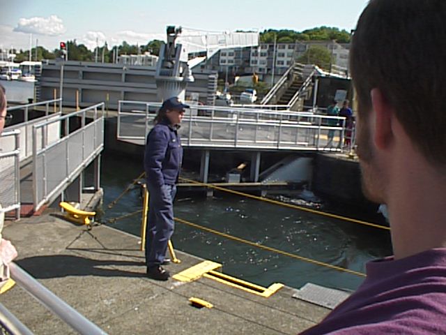 gus had never seen locks before. so we went to see the locks. this lady ran them, and she was mean.